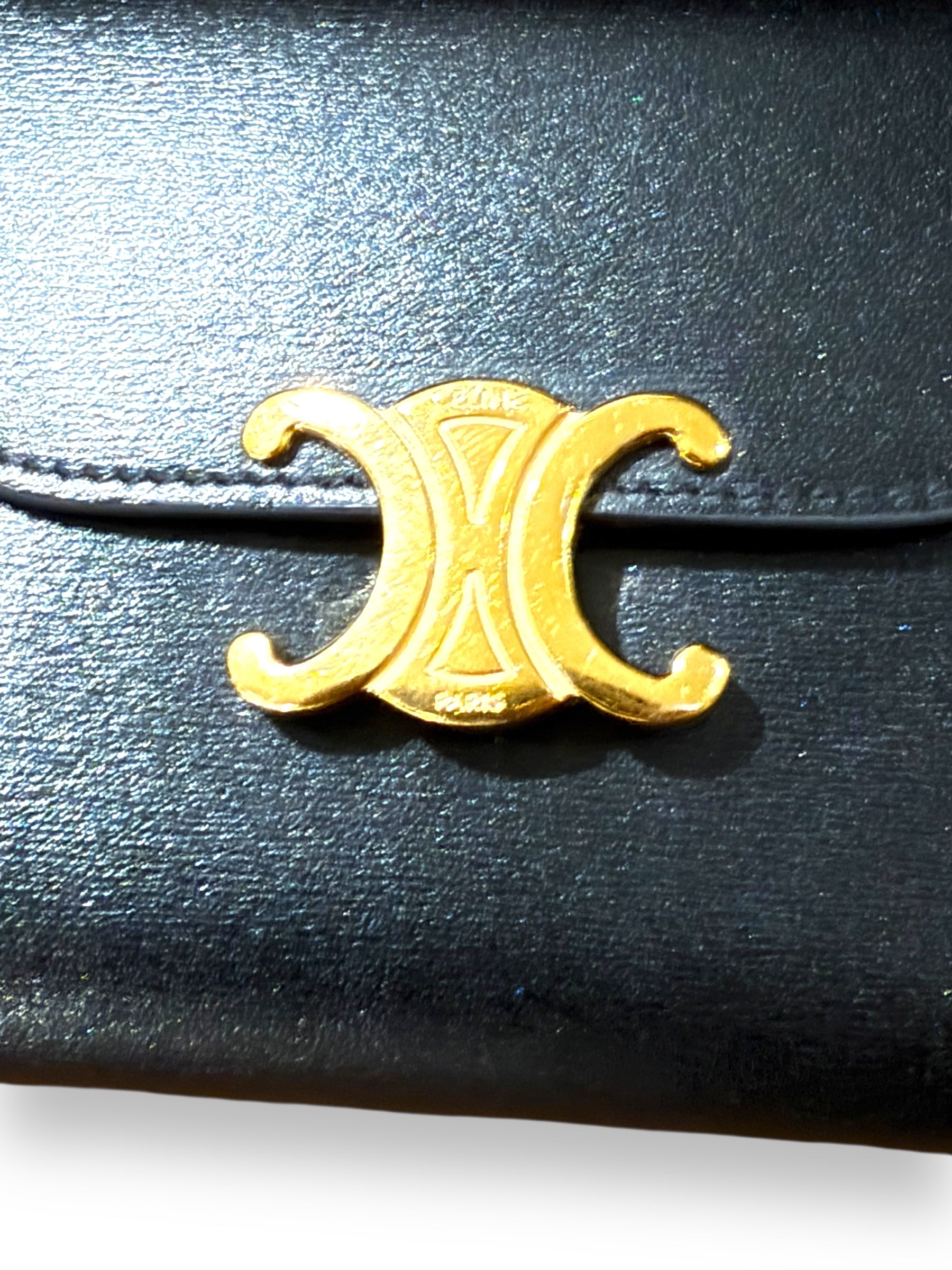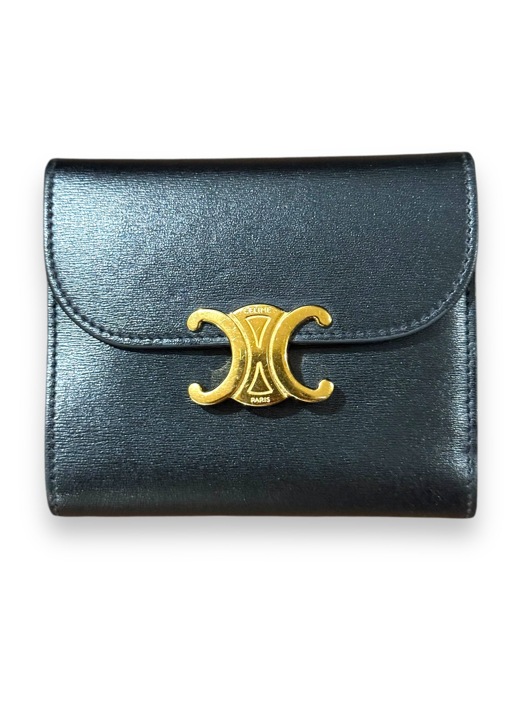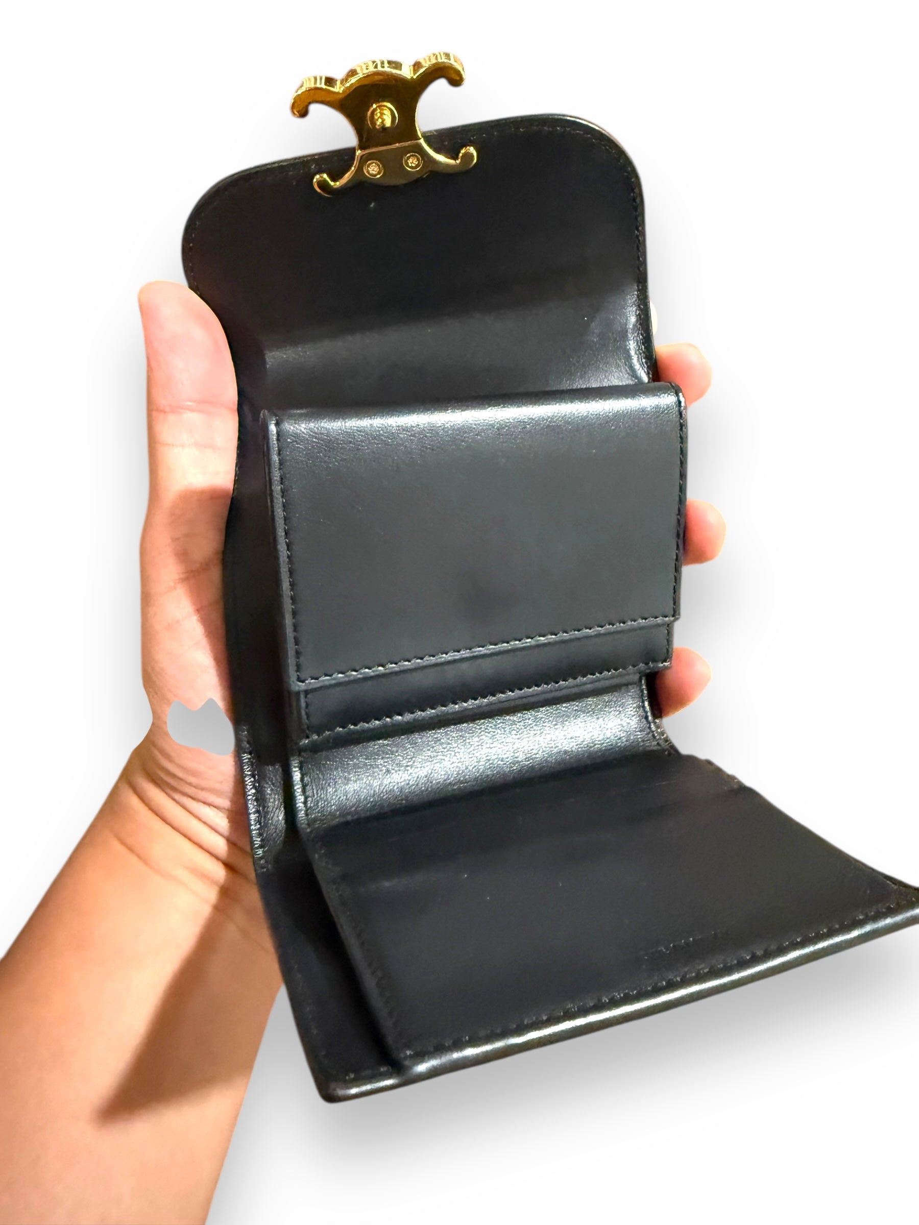 Celine Triomphe Black Calfskin Small Flap Trifold Wallet